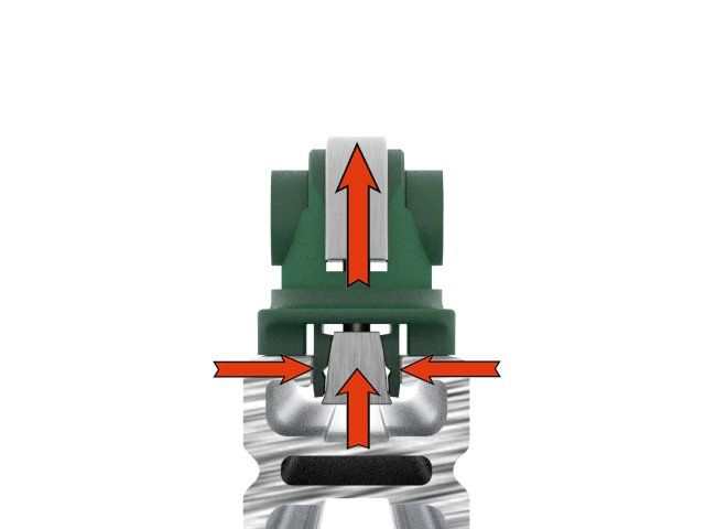Die Schnellspannvorrichtung kann für unterschiedliche gängige Aluminiumprofilschienen ausgelegt werden -